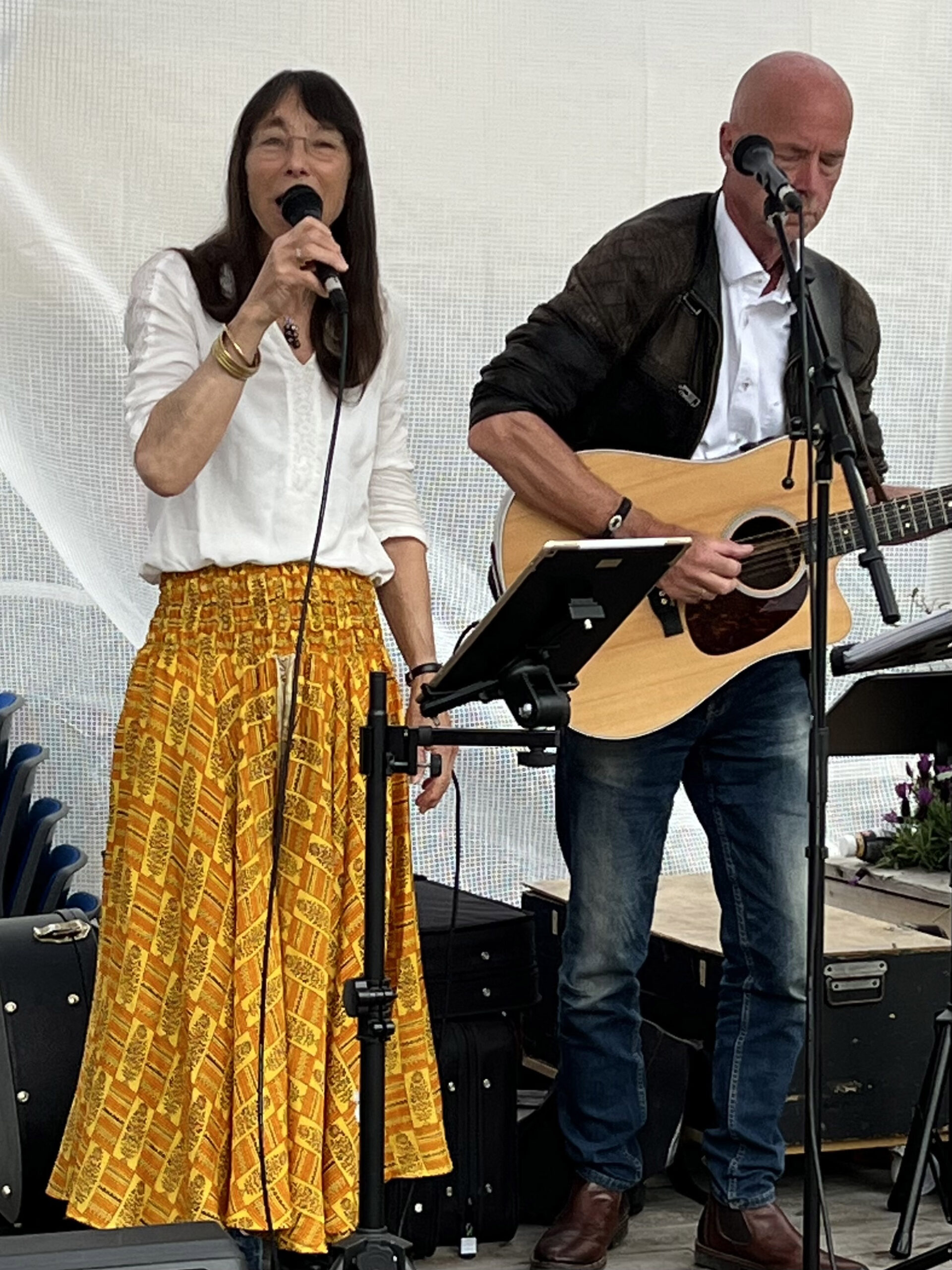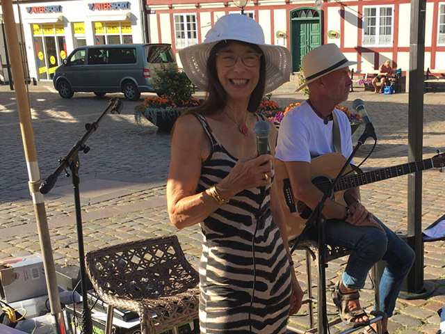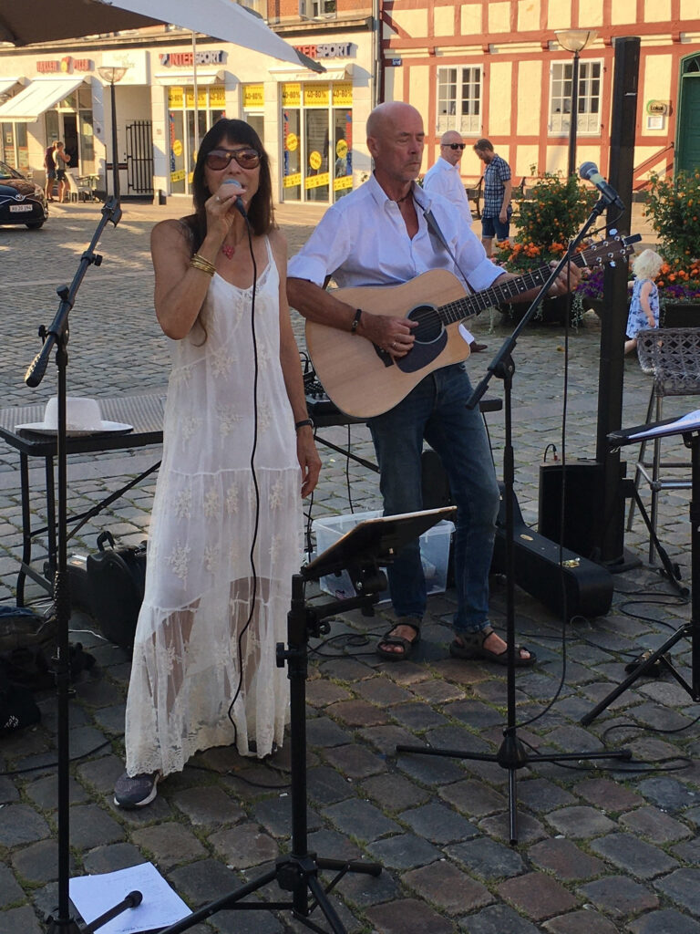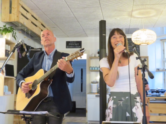 Publikum bevæges og medinddrages i duo’ens fortolkning af danske og internationale hits og inspireres til at synge med.